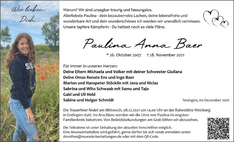 Ich wünsche Ihnen viel Kraft und ich bete für Sie, dass bald auch in euren Herzen,